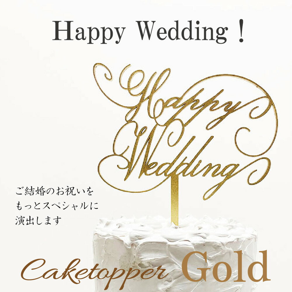 ケーキトッパー【ハッピーウエディング】【ゴールド】ウエディングケーキ 結婚祝い 結婚式 記念日 装飾 木製 オーナメント